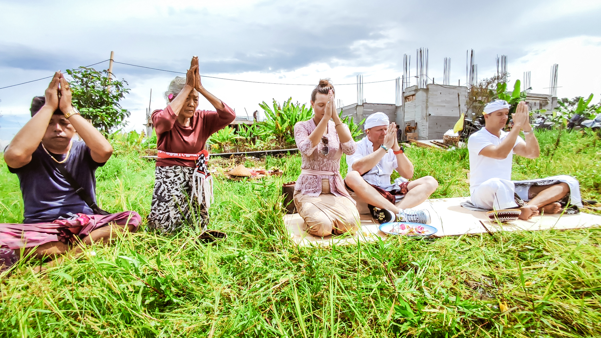 Pár dní zpátky jsme tento krásný rituál uskutečnili na jednom z našich pozemků v oblasti Tumbak Bayuh, kde začínáme s novou výstavbou. A co nás těší ještě víc – ceremonie se zúčastnili i naši klienti, kteří se tím mohli hlouběji napojit na své budoucí místo. Byla to chvíle propojení mezi kulturou, duchovnem a radostí z nové životní etapy.